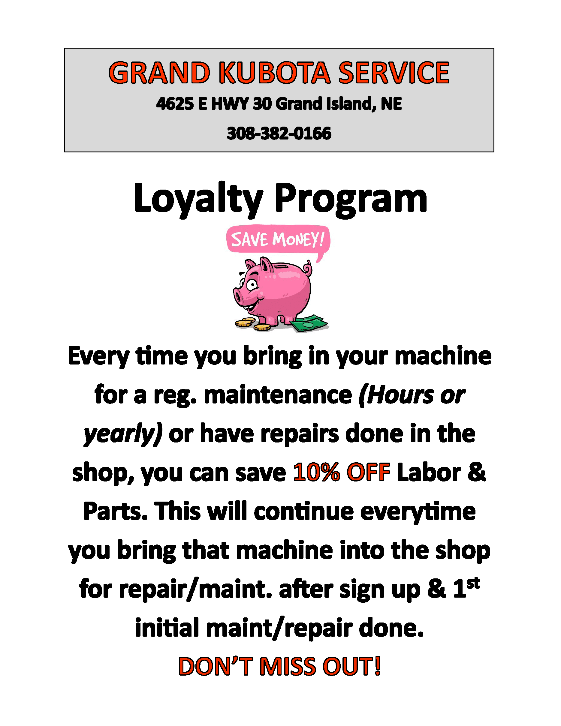Service department loyalty program. If you like to SAVE MONEY this is the program for you.